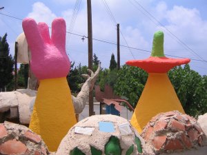 On our Leonardo da Vinci Fellowship at Cyprus College of Art we made a large concrete sculpture for the Great Wall of Lempa, which is an accretion of sculptures and constructions made by Stass Paraskos and various visiting artists on the art college perimeter wall. We had such a good time during our 3 months there and appreciated the generosity of the people, especially Stass, whose creation the art college is.